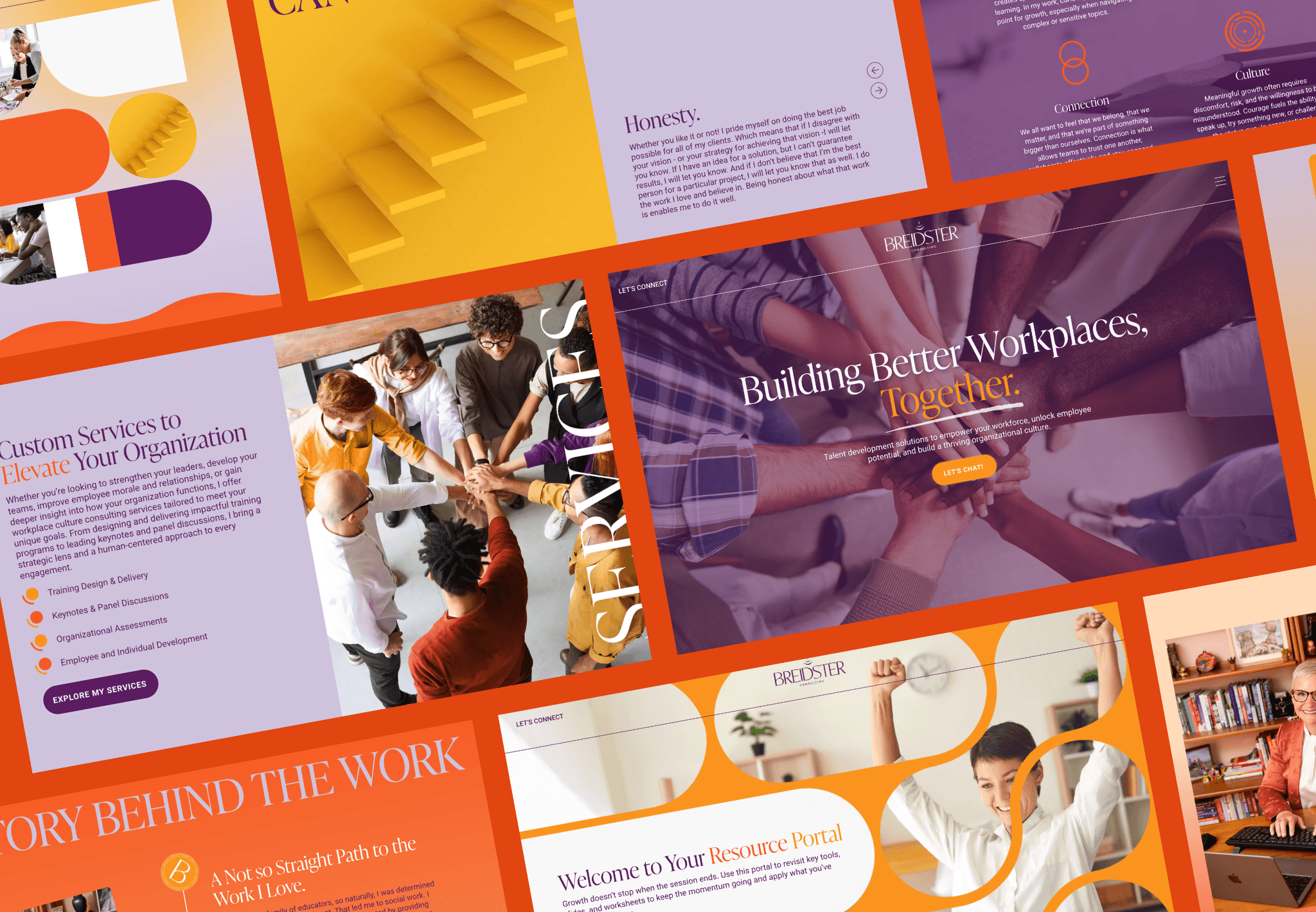 Rachel Breidster is a workplace culture consultant based in Albany, New York, with over 15 years of experience helping organizations across sectors build better teams, stronger leaders, and workplaces people actually want to show up to. She came to me ready for a redesign, and a big part of the strategy was making sure she stood out in a space that tends to play it very safe, because Rachel is anything but generic. Deep plums, rich confident tones, and a full brand identity built around her personality as much as her credentials. The result is a consultant site that actually has a point of view. From there the relationship kept growing, media kits, presentation decks, invoices, and marketing materials all built to the same standard, so everything Rachel puts out in the world feels as polished and cohesive as the work she does inside it.