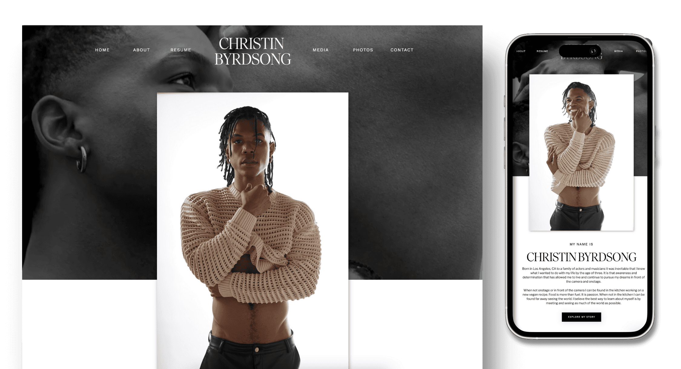 Christin Byrdsong is a Los Angeles-born actor and performer with Broadway World raving about his presence, his power, and his ability to make entire audiences feel it. Built from scratch on Showit, this site needed to match that energy, editorial, elegant, and completely magnetic. Photo galleries, a media reel, resume, and a design that lets Christin's artistry lead without getting in its own way. He described the result as "elegant, sexy, and captivating," and honestly, that's exactly what we were going for.